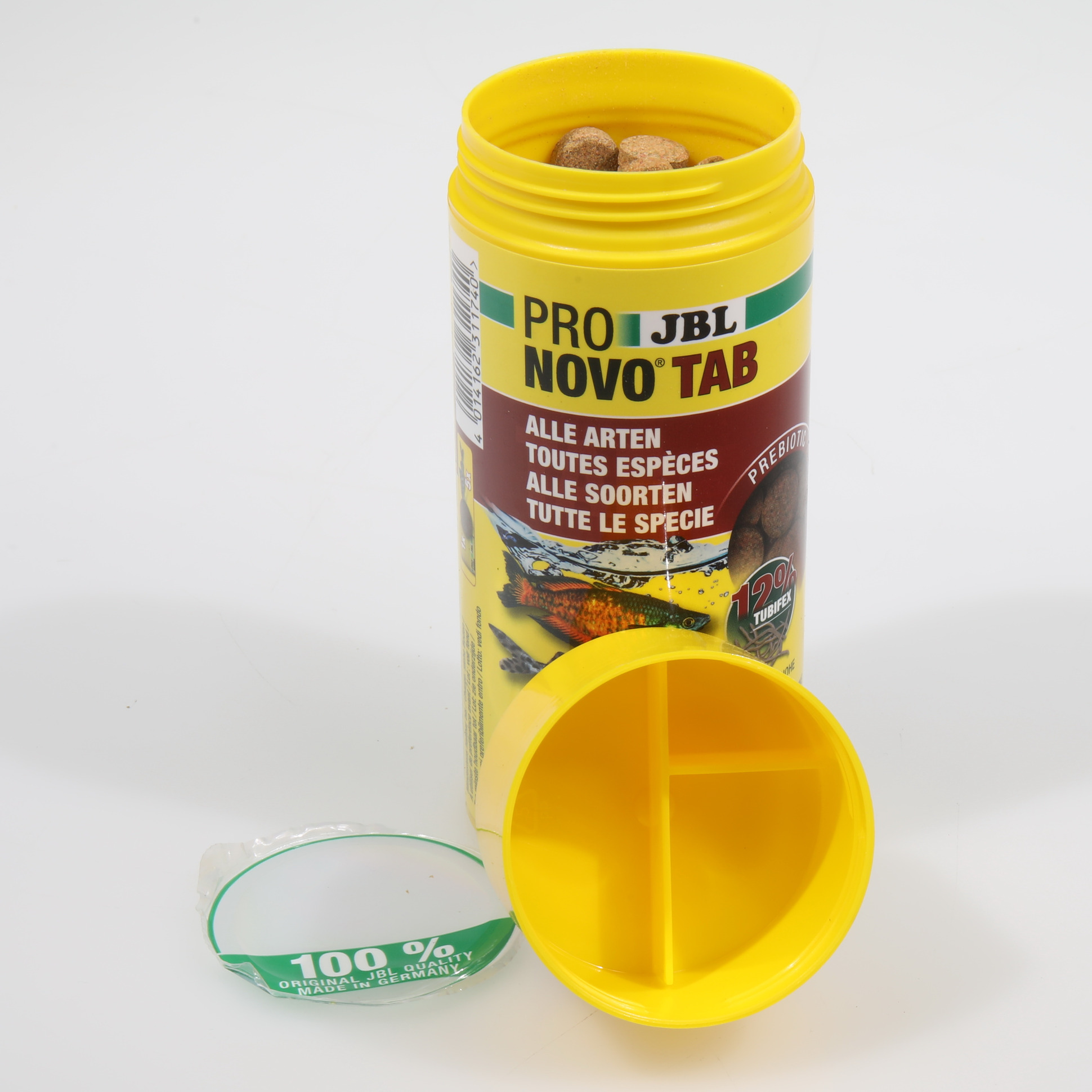Dipte yaşayan balıkların da beslenme talepleri değişiktir: Dipte yaşayan balık türlerinin neredeyse tamamı JBL PRONOVO TAB yerler. Ama serbest yüzen balık türleri de tabletin kokusundan onun yem olduğunu hızla keşfederler. Çok büyük balıklar bunları bütün olarak yutarken, küçükler ısırıp kopararak yerler. Tablet cama yapıştırılır yapıştırılmaz tüm balıklar tarafından çok severek yenir ve bu sırada onları izlemek de çok keyiflidir.